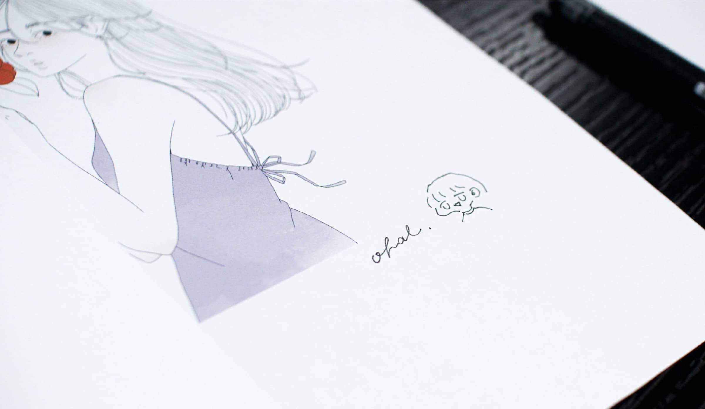 何か実体験があったというよりは、私が感情で生きているっていうのがあるかもしれないですね。それもあって、全部イラストに出ちゃうので、自分がハッピーじゃないときに描く女の子は全然可愛くならなくて。ハッピーなときに描く女の子はやっぱり幸せそうなんです。そういうときは画面越しにその子を見て私も自然と笑っています。