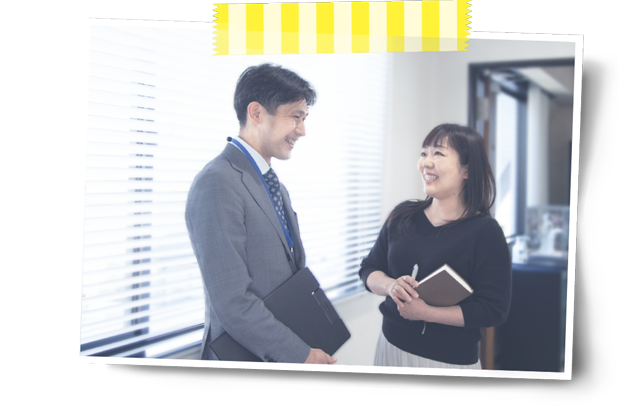 私たちは、何よりも「挨拶」を大切にしています。何事も挨拶で始めて、最後にはきちんとお見送りをする。相手の方に「礼を尽くす」ための基本です。社内でも、部屋に入るときには「お疲れ様です!」と挨拶をします。